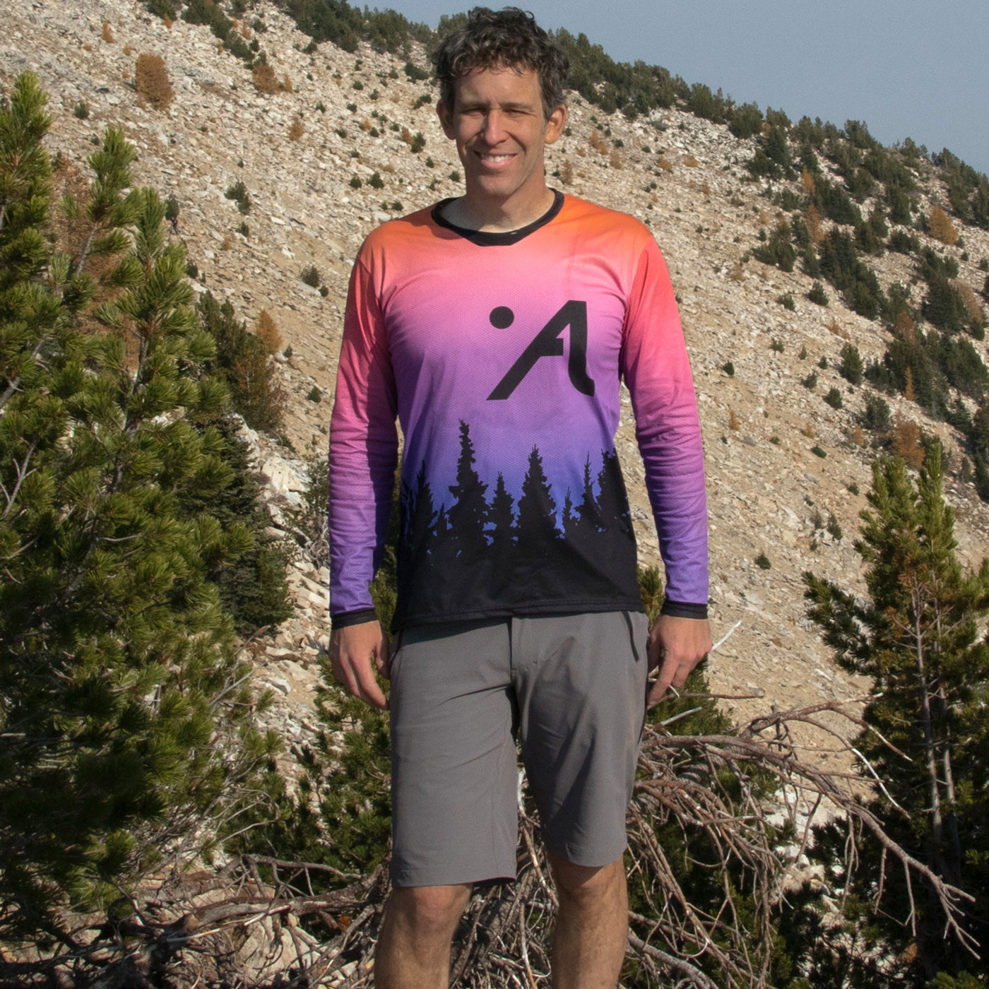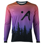 The Abit Gear team trees silhouette on a festive sunset fade for when you're in a party mood. Ultralight, incredibly breathable and fast drying, this is an ideal jersey for getting after it on hot or humid days.