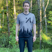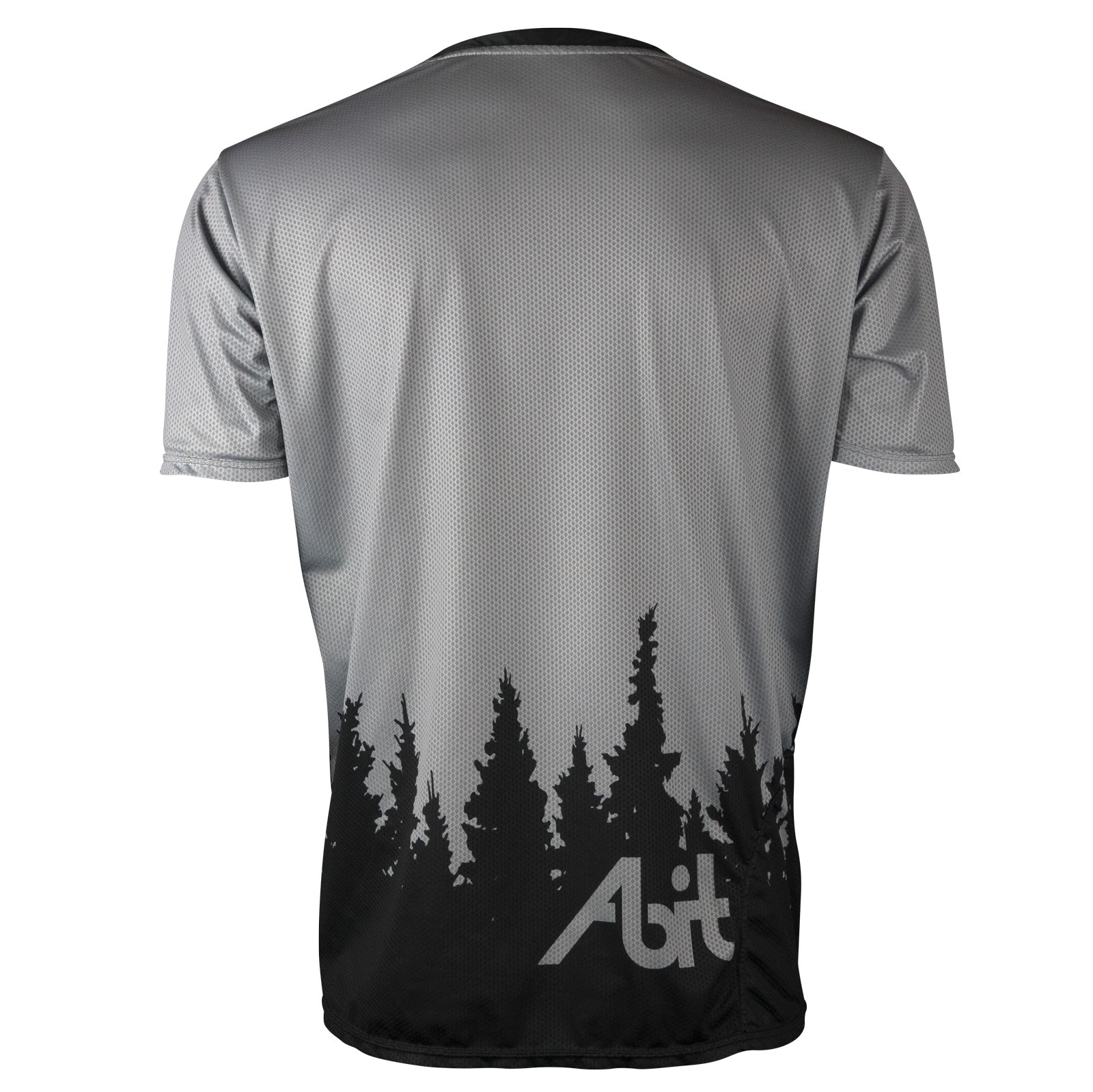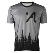 Abit Gear short sleeve team jersey in gray with black trees silhouette. Ultralight, incredibly breathable and fast drying, this is an ideal jersey for getting after it on hot or humid days.